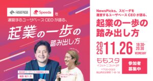 11/26(木)に『NewsPicks、Speedaを運営するユーザベースCEOが語る、起業の一歩の踏み出し方』が開催さ...