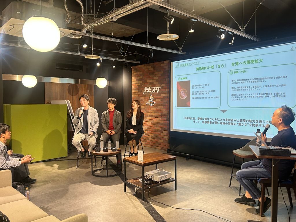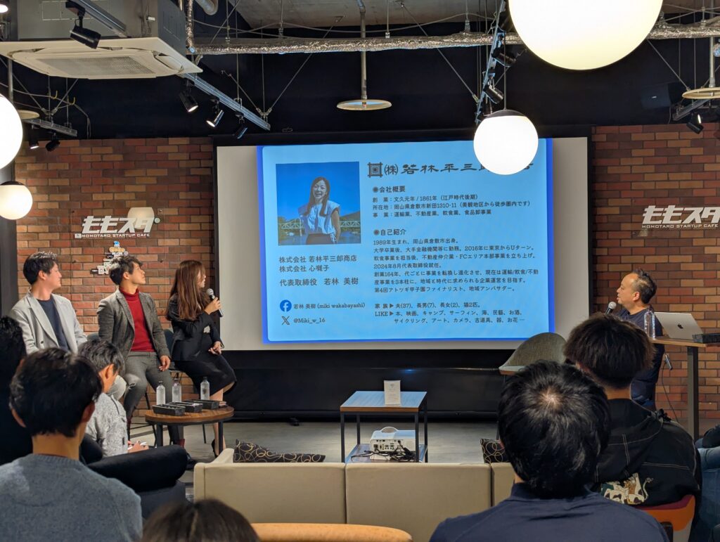 会の中盤では、今年のアトツギ甲子園にエントリーされているという丸互の岡本さんも壇上に招かれ、ゲストに突っ込んだ質問をする場面も見られました。