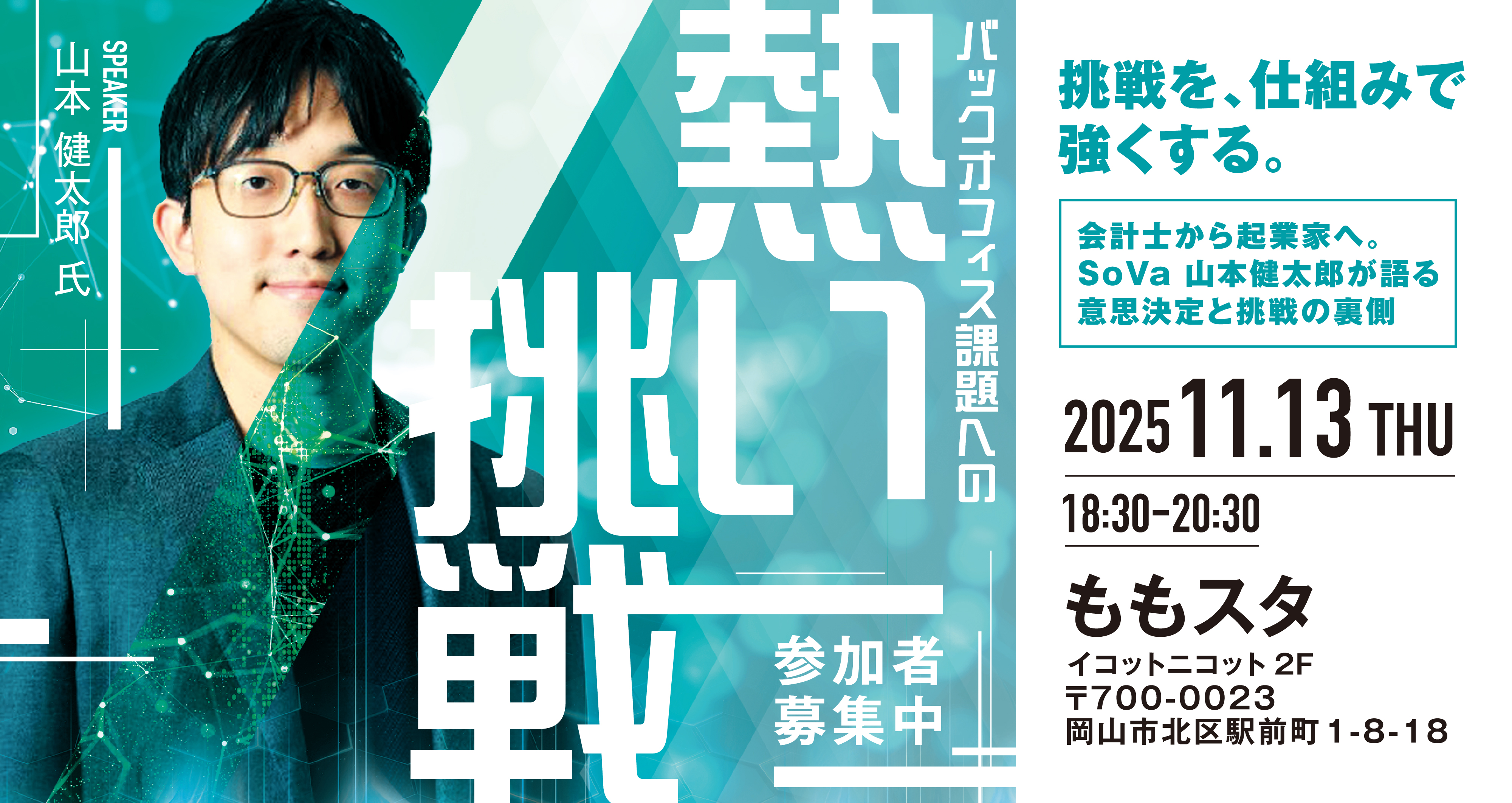 11/13(木)挑戦を、仕組みで強くする。会計士から起業家へ。 SoVa 山本健太郎が語る意思決定と挑戦の裏側