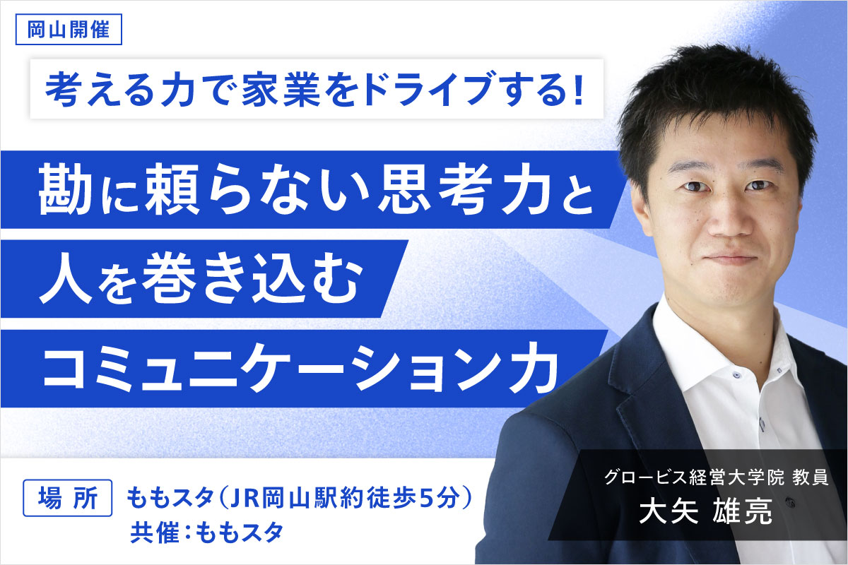 家業に携わる中で、このような壁にぶつかっていませんか? 本セミナーでは、そんな悩みを持つ方に向けて明日から実務で使える「考える力の鍛え方」を学んでいただきます。