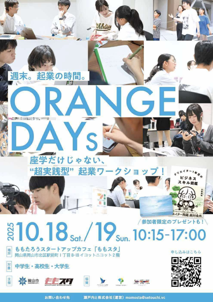 イベント詳細 日時:2025年10月18日(土)~19日(日) 10:15~17:00 場所:ももたろうスタートアップカフェ「ももスタ」 (岡山県岡山市北区駅前町1丁目8-18 イコットニコット2階) 対象:岡山市内の中学生・高校生・大学生 参加費:無料(飲食無償提供) 持ち物:筆記用具、(持っている人はノートPC) 質問などがある方はこちらへお問い合わせください! URL:昨年の様子を知りたい人はインスタ見てくださいねー!!https://www.instagram.com/unblue.23